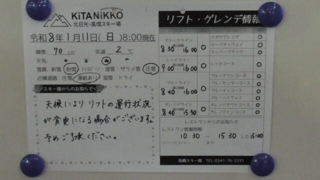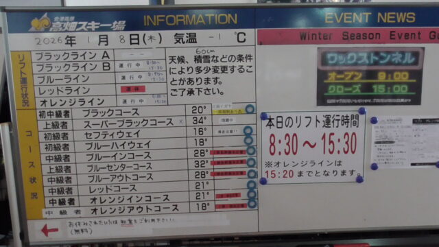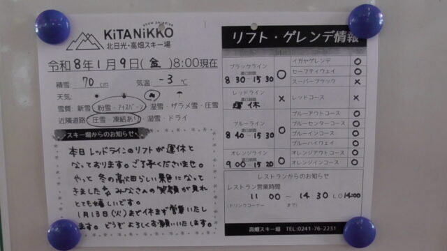 お食事 / スキー / 高畑レッドも動いてた😃。 2026年1月13日 - Leave a Comment 掲示板😌。 午前中はいい天気だったんですよ。 空いてたし🥴。 カラシは眠気と関係無い、とコパイロットも言ってたから👌。 ラストオレンジは雪☃️でした。