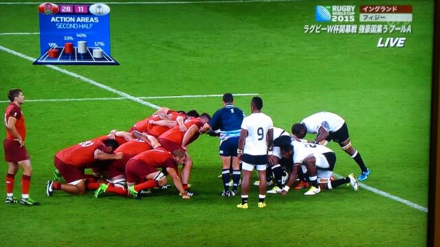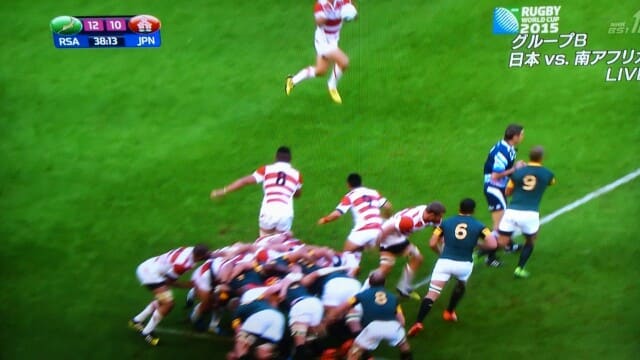 前半、びっくり日本の先制点PK、強豪南アからの力押しトライ。