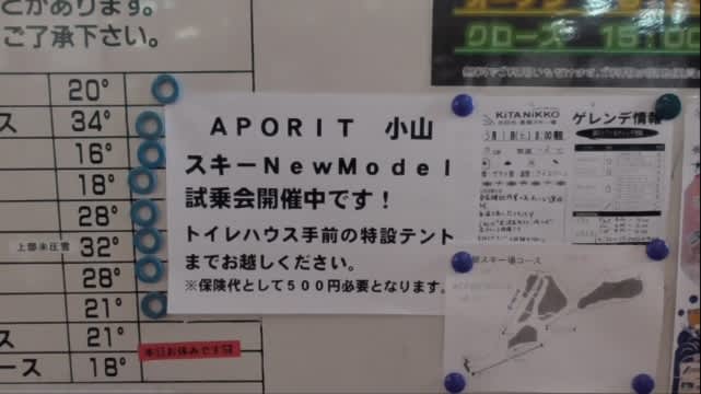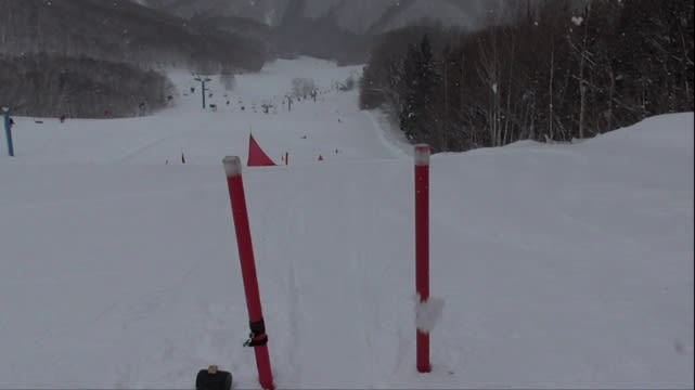 試乗は、レッドコースで小回りしてみて、ブラックから猪谷ゲレンデで大回りも試す感じ。