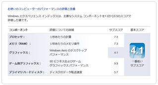 Windows エクスペリエンス インデックス