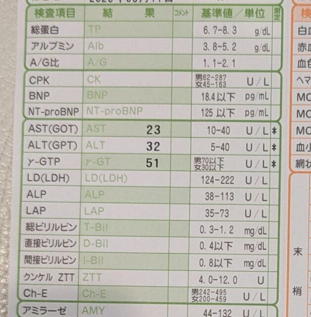 前回の血液検査、肝臓系がその前より改善されてたらしい😄。