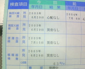『異常なし』が並んでる中でひとつだけ『心配なし』が・・・・・。