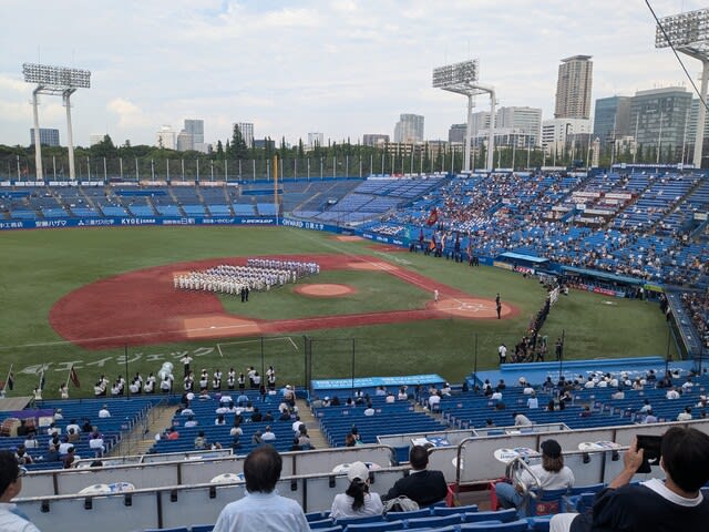 第二試合始まってしばらくしたら日陰になって、ときどき風も通ったからアラート言う割には快適だった。
