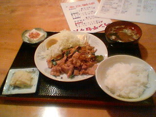 高畑スタミナ焼き定食 2005年2月7日2025年9月23日 - Leave a Comment ソフトドリンク付きで1,050、おあしすにて。 割とお気に入りのメニューだけど、ドリンクは烏龍茶しか選びようがないんだよね。