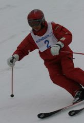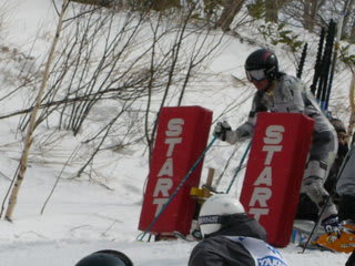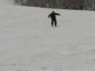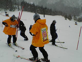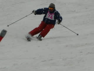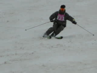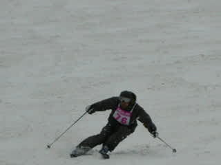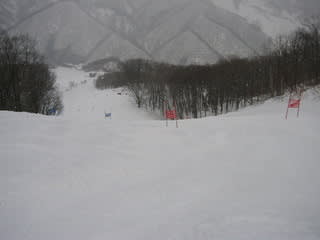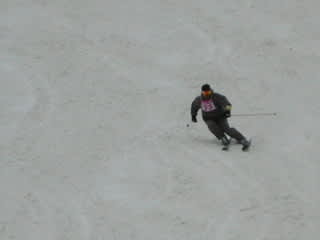 この日の朝までの降雪と黄砂とでまったくスキーが滑らず、そのためかいつもは二級の大回りをやってるあたりで中回りを。