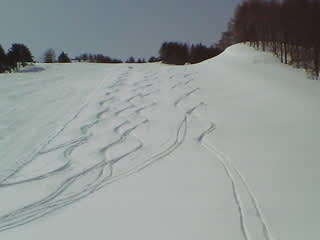 高畑埋まっちゃった 2006年4月1日2025年9月23日 - 1 Comment 土曜日の朝、いつもの会津高原高畑スキー場レッドコース。 きれいに作ってあったモーグルコースのコブ斜面、平日の降雪でまっ平に。 ## 四月バカではないよ。