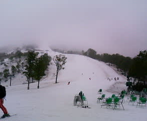 とはいえ、雨だったのと霧とで一日中視界が悪く、写真では多少見えているようだけど実はこれは最後の一本を滑った後。