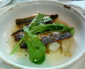みなさんこのお店をよく使われてるようで、メニューにないランチを頼めるハガキ持ってたりで、おかげで9人全員が「ランチの女王」という謎のメニューを。メインの惣菜が五種類ぐらいから選べて、ぼくが頼んだのは写真のイワシ。
