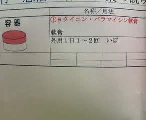 ちなみに、週一度のクリニックでの治療は、患部を液体水素で凍らせて、浮かせてとること。まあ、一度や二度では取れやしないのだけど、凍らすというよりも焼かれてる感じで、イタイ。