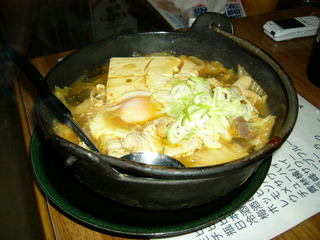 で、暑いので辛いものを、と思ってメニューに無いのにキムチ鍋(写真)を頼む。