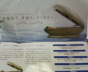 といってもほんとに岩盤の上に寝るのではなく、マシーンの中に横たわるニセモノ。玉川温泉はまったく関係ないし。