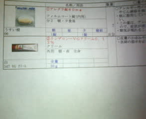 病院、通院、処方箋飲み薬。 2006年9月9日2025年9月23日 - 4 Comments. ついに飲み薬も使うようになっちゃった。 カラダの側面になんか出来たのが拡がっちゃって、いつのまにかけっこう大変な状態に。って、三年前のと同じなんだろなぁ、と軽い気持ちで加茂先生のところでついでに診てもらったら、顕微鏡まで使ってたけどカビはいないって。なので、これで様子見ましょう、って塗り薬だけでなく飲み薬も処方箋に書いてくれちゃった。 飲みクスリ、なんか病人みたいでヤダな~。