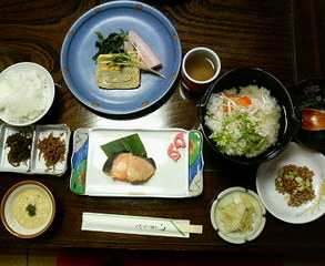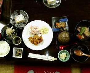 金曜日の半泊は部屋もらえたけど、この週は土日でチビッコの大会があるとかで、チビッコのグループだけで29人も泊まってたらしく、かなりびみょーな立場に。いるところがないのでとりあえずお母さんの部屋にいたけど、やることもないので5時半ぐらいからお食事いただき始める。
