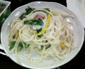 早めに食べ始めちゃったものだからまだみんな並んでなかったらしく、あとからスパゲティが出てくる。