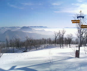 いつもの会津高原高畑スキー場で朝イチにオレンジラインで上がったら、たかつえの方に雲海が見えたのでパチリ。