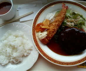 ハンバーグ& エビフライランチ