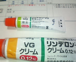 100円ショップの安物防水絆創膏でかぶれたのか、指先の皮が薄くなっちゃって、加茂先生に相談したらリンデロンを出してくれた。