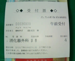 どうやら胃カメラ専門の先生らしいので、ちょっと安心。途中でなんかとったりしたら結果が出るまで一週間かかるらしいのだけど、何も無かったらしくそのまま診察へ。
