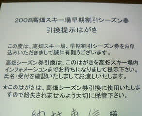 ・早期割引シーズン券引き換え葉書到着 (hirokamaの屋根裏部屋)