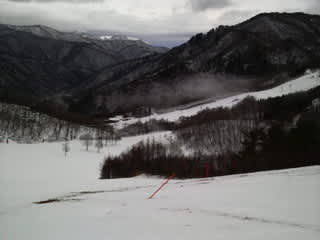 コースは、週末からはそれほど雪が減った感じはなく、雪のあるところと無いところがハッキリしていてちゃんと滑れたりする。あぁ、でも、固くて、いろんなところにウェーブがあるな。