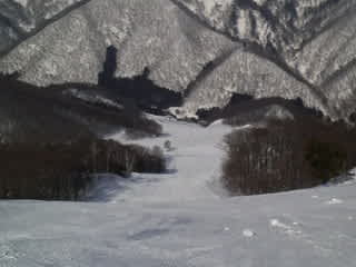 さすがに直滑降は出来ないけど、いつもはデコボコなイメージのブルセンもきょうはすっかり整地されてた。