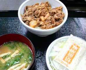 雨が降ってきたので十日市場の「なか卯」にて、290円。