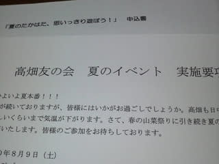 マイミクのおっつーさんからの情報によると、高畑の夏イベントの詳細がWEBページに載っているそうです。