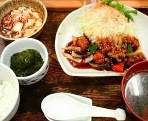 ごはん少なめ頼んだら、いままでになくほんとに少ないな。いや、それよりも、ニクが見本よりもかなり小さめなんですけど。