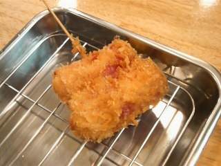 ただ、開店記念で生ビール半額なのにアサヒだったから泡盛「神谷三年古酒」にしちゃったし、串カツがオール100円というのに3本頼んだだけで鉄板焼もオーダーしちゃったりと、意味ないな(~_~;)。