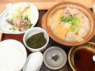 夜は青葉台やよい軒」、桜島どりの水炊き定食、めかぶ。