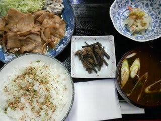 夜は「おあしす」、生姜焼き定食(  ̄ー ̄)。