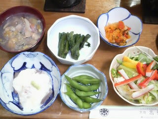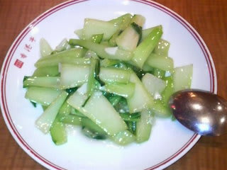 お昼は牛丼セット、山くらげ梅肉あえ。