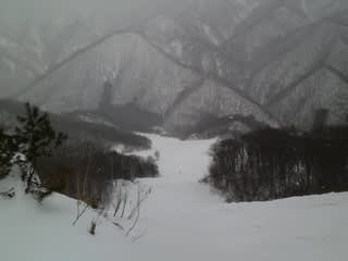 急斜面の下でいったんみなさん止まってたけど、ちょっと会釈しただけでそのままブラック、猪谷へ。