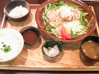 「鶏の竜田揚げオレンジぽん酢定食、ごはん少なめ、とろろごはん、じゃこおろし」という呪文はどうにかならないかな(~_~;)。990円(^^;。