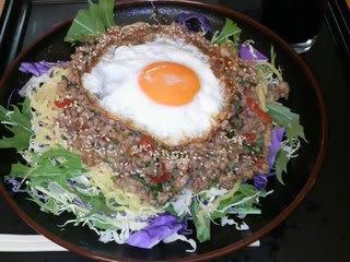 ご飯ではなく冷麺の上にガッパオが載ってる(*^^*)。
