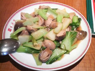 ・半額メニューの3番、フクロ茸と青梗菜炒め「草茹青菜」、340円