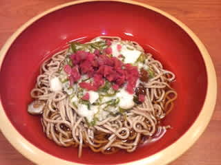 とろろ、オクラ、なめこ、めかぶ入り。刻んだ梅がアクセントらしい(^_^;)。