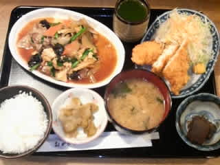 お食事ムアル・ツォタン 2009年10月16日2025年9月23日 - 1 Comment 菊名「おがさや」、[得]セット定食の4番。 木くらげ・卵・野菜の辛し炒めのことらしい(^.^)。 セットのもう一品はチキンかつ(*^^*)。 ちょっと早めであまりお腹も空いてないけど、小ライスにしたからいいよね。 (^人^)