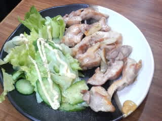 ごはんは大盛りサービスだけど、半ライスにしてもらった。まあ、量はこんなもんだろー。ドリンクバー付き。