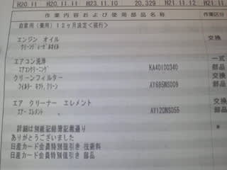 伝票には書かれてないけど、ステアリング関係のリコール作業もやってるはず(^_^;)。