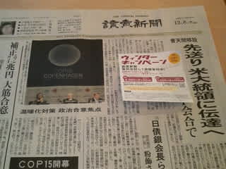 2月末まで読売新聞をモーニングの先着20名に提供しているとのこと。