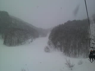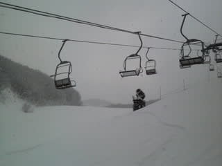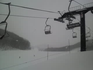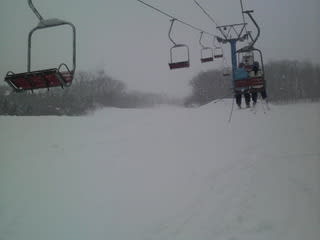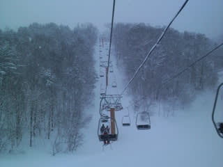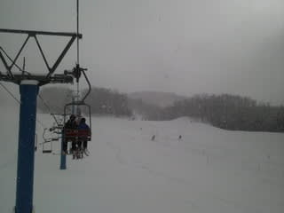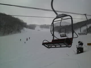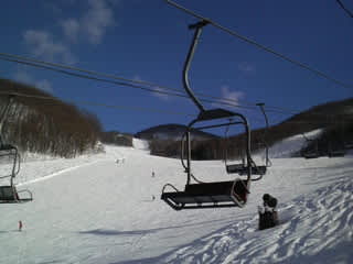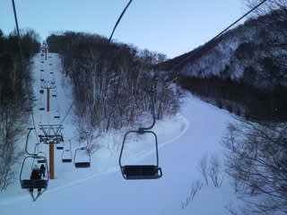 ブラック以外のリフトにも乗りたいと言ってたけど、オレンジは長いのでさすがに大変だろうと次に来たときにしようねとあきらめてもらったけど、聞いてみたらブルーには何回も乗ったというので営業終了間際にブルーラインへ。