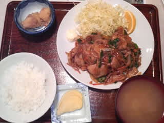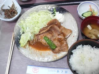 食べ始めちゃったけど、「豚しょうが焼き定食」。
