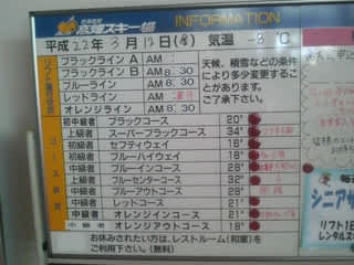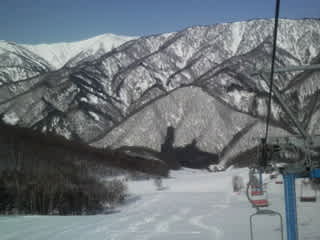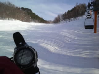 最終日なのですべてのコースを滑ってみるべく、午前中はレッド→オレンジアウト、イン→ブルーハイウエイ、イン、センター、アウト→猪谷→スーパーブラック。