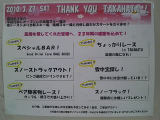 なんでも、今年値上げしたらひとが減ったたかつえは来期値下げで、この3月までに買えばシーズン券はさらに安いんだとか。