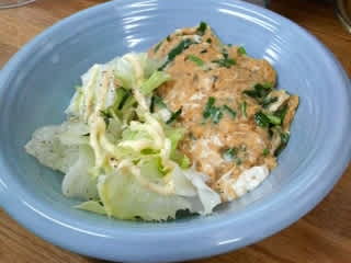 ## ごはんは少なめ、でも1,071キロカロリー(~_~;)。