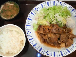 なんか体調悪いのはおにぎりだけの朝ごはんで栄養が足りないのかもと思い、夜はすき家で豚しょうが焼き定食(^-^)。