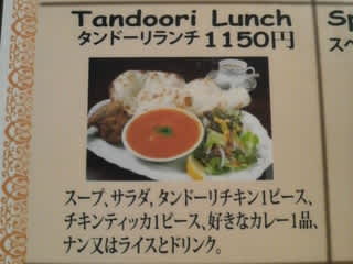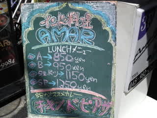 お食事インド料理「アマル」 2010年8月11日2025年9月23日 - Leave a Comment 青葉台で夜は食べられないランチメニューを出すところを探したのだけど、夏休みなのか営業してないお店も多く、結局カレーに(^_^;)。 インド人は仕事熱心だなぁ(^.^)。 一番安いAランチでもサラダは付くけど、ニク食べたいのでタンドリーランチ(*^^*)。 オレンジジュース。 スープ。 本日のおすすめカレーはチキン・ド・ピアザ。 おかわり自由だけど、大きなナンはひとつで満腹(^-^)。 これで1,150円なら、スパイシータンドールの方が安いか(~_~;)。 まあ、おいしかったけどね(^^ゞ。