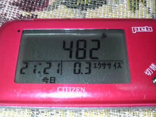 食事は、チーズと菓子パン、計700キロカロリーぐらいのを2回。あとは牛乳ちょっとと野菜ジュース1缶。水は2Lのボトルが半分ちょっと飲んだぐらい。