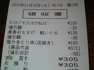 お食事最終日 2010年11月16日2025年9月23日 - Leave a Comment ときどきやってるセブンのおにぎり100円セール。 最終日にしてようやく利用出来た。 なんか小さめなのは、100円の日だから?